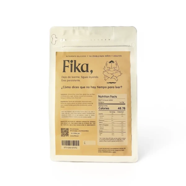 Las Galletas Cinnamon Roll contienen ingredientes como harina de almendras, harina de avena sin gluten, harina de tarwi, canela, aceite de coco, panela, stevia, psyllium, bicarbonato, sal de maras y extracto natural de vainilla.