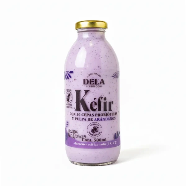 El Kefir de Leche con Arándanos es una bebida fermentada que combina los beneficios del kéfir con el delicioso sabor de los arándanos. Se elabora a partir de leche fresca fermentada con cultivos de kéfir y se enriquece con arándanos naturales, ofreciendo una opción nutritiva y refrescante para incorporar a tu dieta diaria.