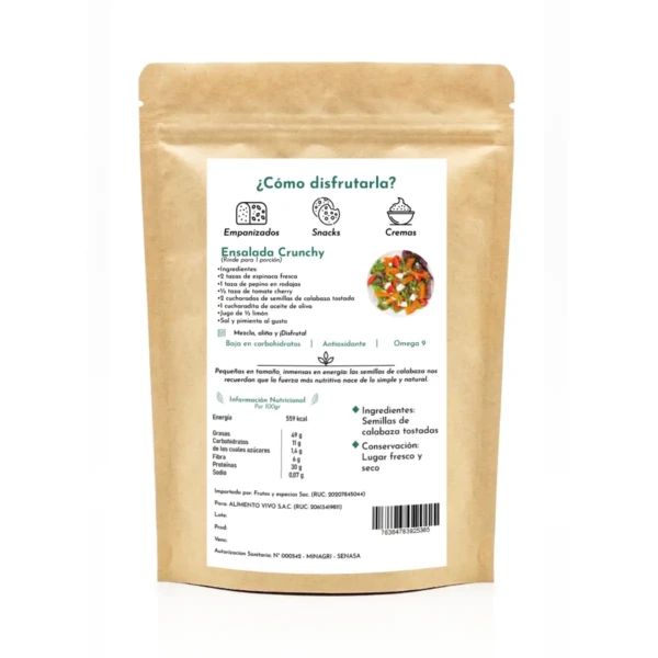 Las semillas de calabaza tostada 250 g son una excelente opción para quienes buscan un alimento natural, nutritivo y versátil. Este producto destaca por su sabor crujiente y su alto contenido en nutrientes esenciales, convirtiéndose en un complemento ideal para una alimentación equilibrada. Las semillas provienen de cultivos seleccionados y pasan por un proceso de tostado que conserva sus propiedades y potencia su sabor.
